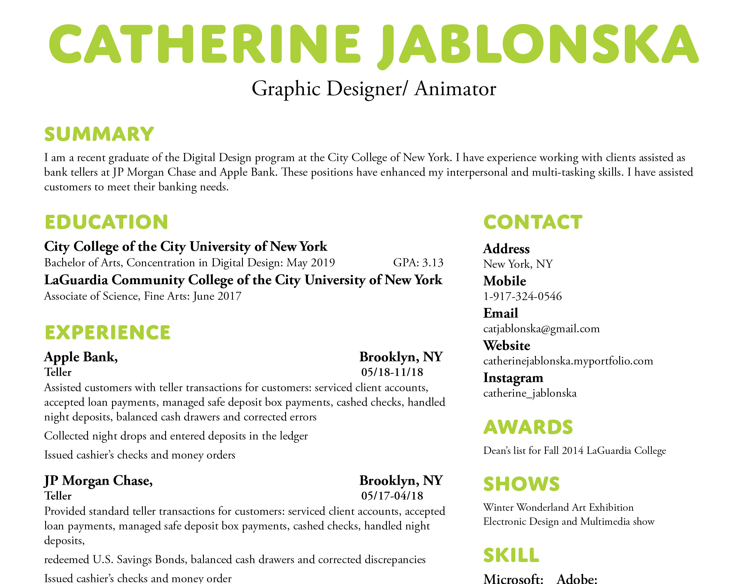 I graduated from LaGuardia Community College with a Fine Arts degree and continued my studies at City College of New York for my Digital Design degree.
